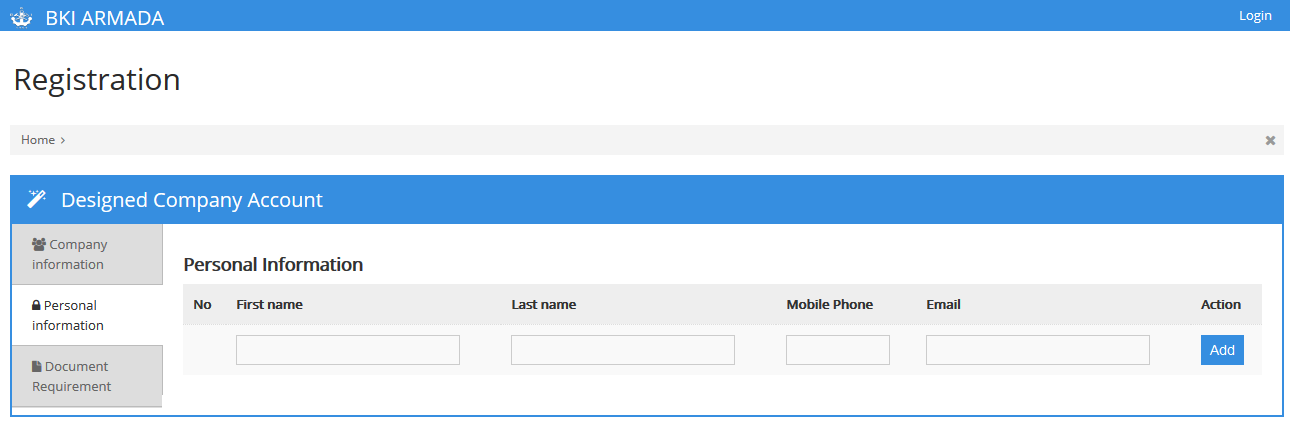 Personal information berisi data PIC untuk yang akan diberikan kewenangan pemberian User ID sesuai data Kapal dari Ship Owner
