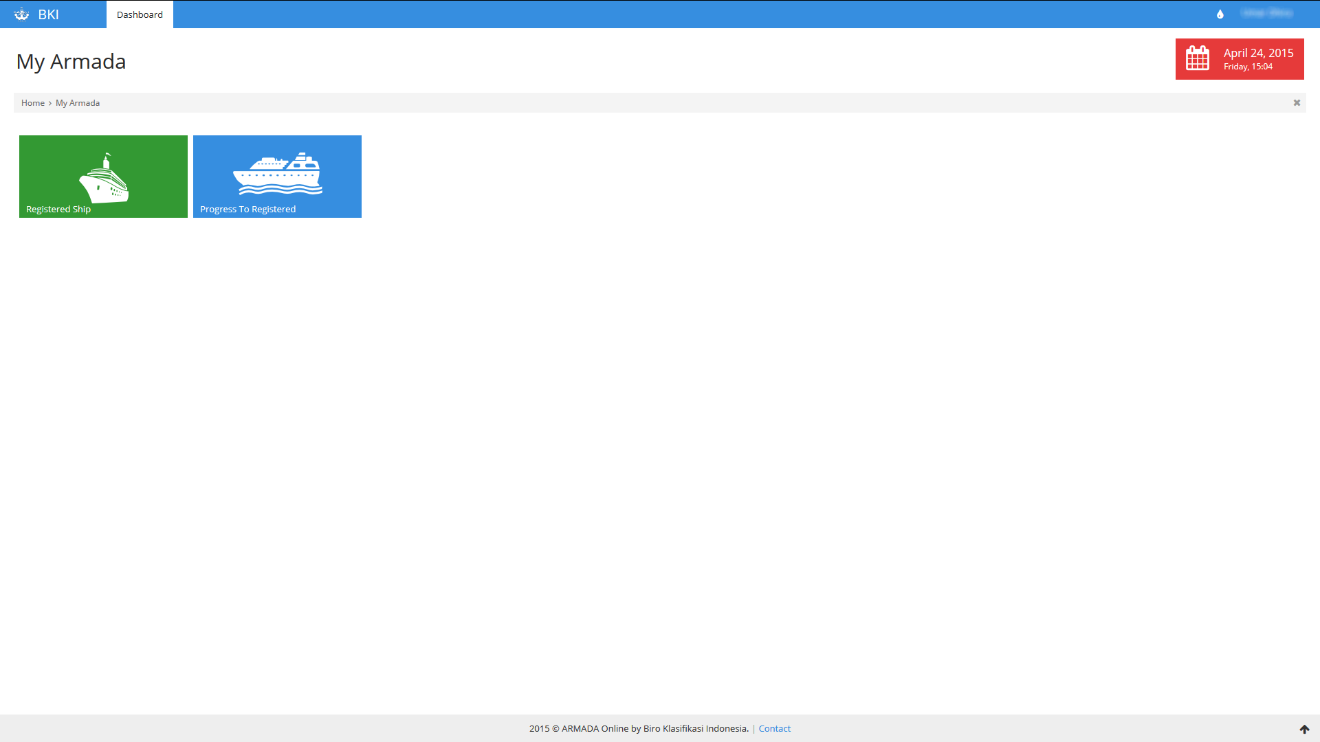 Main Menu (Dashboard) My Armada Informasi Mengenai Kapal-kapal teregister dan progres untuk register Created with the Personal Edition of HelpNDoc: Free PDF documentation generator
